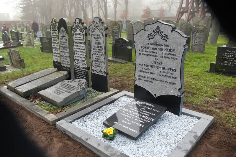 In 2005 is Fokke van der Heide bij zijn eerst vrouw Gooitske van der Meulen 1916-1967 bijgezet. In 2015 is Tjitske Kuipers, de tweede vrouw van Fokke van der Heide, als laatste bijgezet in het van der Heide familie graf.