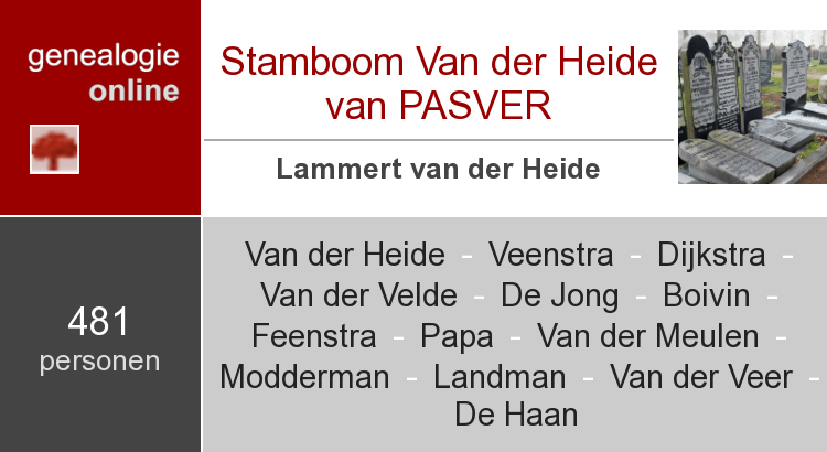 Op genealogie online vindt u de actuele stamboom van: Van der Heide van PAS-VER.